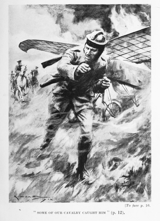 Retiring, we took up a position behind a wood, and were thinking that we should get a bit of a rest, when a German aeroplane came flying over us, gave our hiding-place away, and brought upon us a fire that drove us out and sent us back to three lines of trenches which we had been occupying.